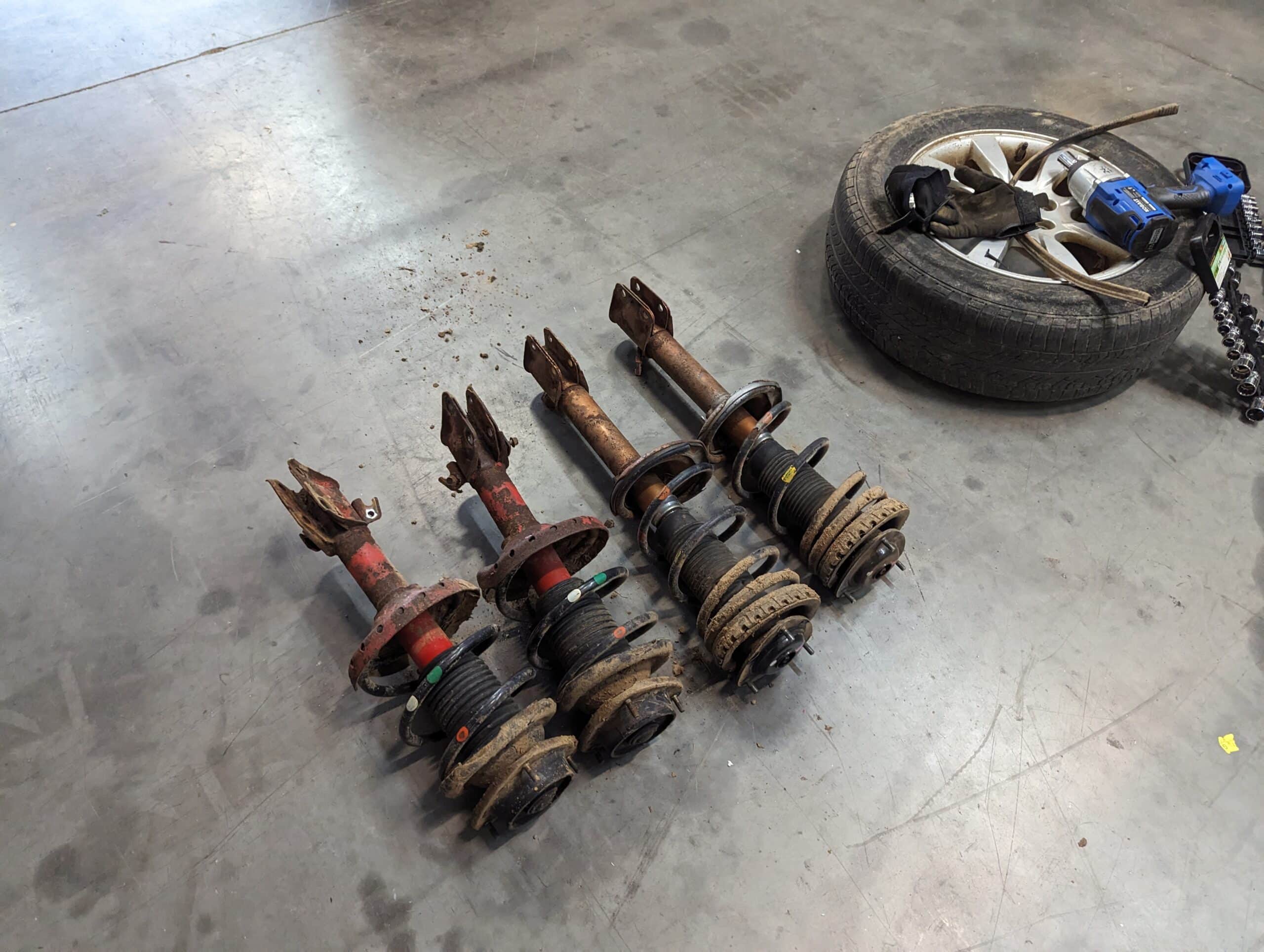 The biggest issue has been surprise understeer. It could be a bump, it could be a dip, and any time a tire lost contact with the ground, the direction of travel became determined by inertia, not the direction the wheels were pointed. Suspension with longer travel, and dampening that can be adjusted to suit the surface being driven on would fix this. Solution? Friends at Fortune Auto built a custom set of long-stroke coilovers to test out on the Forester, offroad. NOTE: No, this is not something they currently sell, nor is this the intended use of their subaru coilovers.